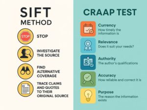 Luckily, librarians and researchers have been thinking about these problems ever since the Internet became available to the general public. Experts have developed several methods that researchers can use to guide their process in evaluating sources. The methods discussed in this article all cover the essentials of evaluating information, and have acronyms that make them easy to remember: the SIFT Method and the CRAAP Test.